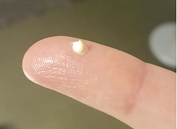 Kijk, dit is de juiste hoeveelheid oogcrème voor beide oogcontouren.